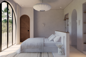 This project consists of 7 villa lots with an area of 1968 sqm, It consists of two types of villas, 2 bedroom villas and 3 bedroom villas. The 2 bedroom villa has an area of 200 square meters consisting of a living room, powder room, kitchen, master bedroom ,master bathroom and swimming pool. As for the 3 bedroom villa has an area of 300 square meters, consisting of a master bedroom, bedroom 1 and 2, living room, storage, kitchen and 3 bathrooms and swimming pool.
