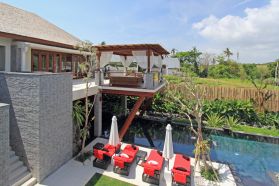 The villa consist of two storey building with 5 bedrooms, living dining room, open balcony hanging above the jacuzzi and private swimming pool. The house situated within a beautiful 1,750 m2 lush tropical garden.
