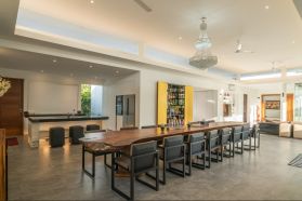 A beautiful private villa located at Canggu has 4 bedrooms, 1 guest room, a swimming pool, etc. This private villa was developed by OG architect, Mr. Oliver Gehlen. Bingkai Langit Konstruksi has been involving for civil architecture and MEP works.