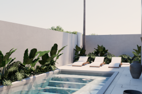 This project consists of 7 villa lots with an area of 1968 sqm, It consists of two types of villas, 2 bedroom villas and 3 bedroom villas. The 2 bedroom villa has an area of 200 square meters consisting of a living room, powder room, kitchen, master bedroom ,master bathroom and swimming pool. As for the 3 bedroom villa has an area of 300 square meters, consisting of a master bedroom, bedroom 1 and 2, living room, storage, kitchen and 3 bathrooms and swimming pool.